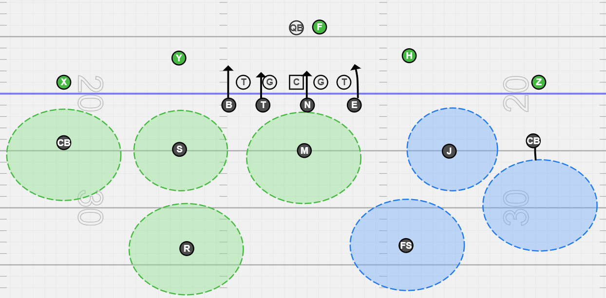 An offense could look to exploit a linebacker (as opposed to a corner) by dropping all the way to the boundary. On the flip side, the offense may look to run the ball toward the nickel corner if it favors that matchup over going toward a linebacker.