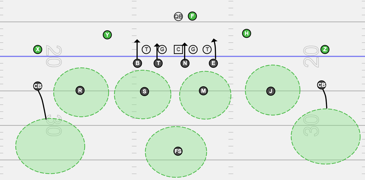 Coaches, however, have gotten creative over the years by showing a cover 4, influencing flat routes, and using the corners to rob underneath routes.