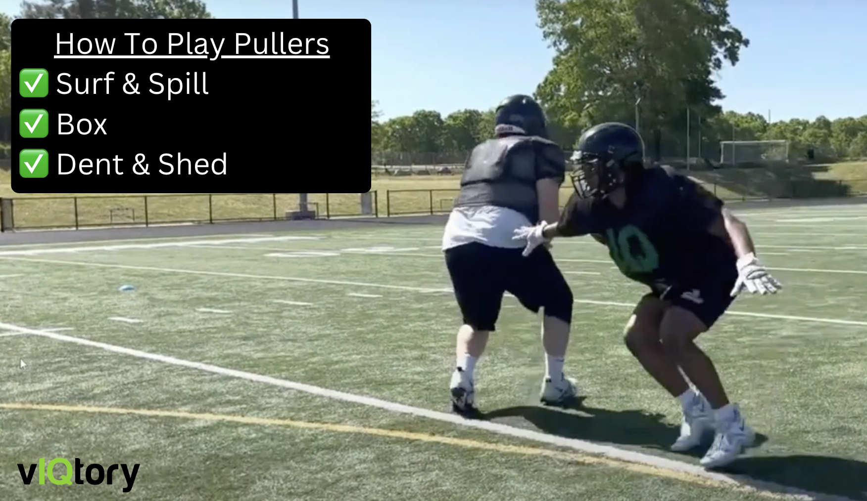 - Close Space – Similar to the box and spill techniques, you’ll want to take as much space as you can. This will often help when your defensive end initiates contact with the puller; they won’t be at full speed.