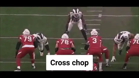 Attacking the outside hand and outside foot is the goal here. The “chop” is when a defensive end chops the hand down toward the ground so he can get around the tackle.